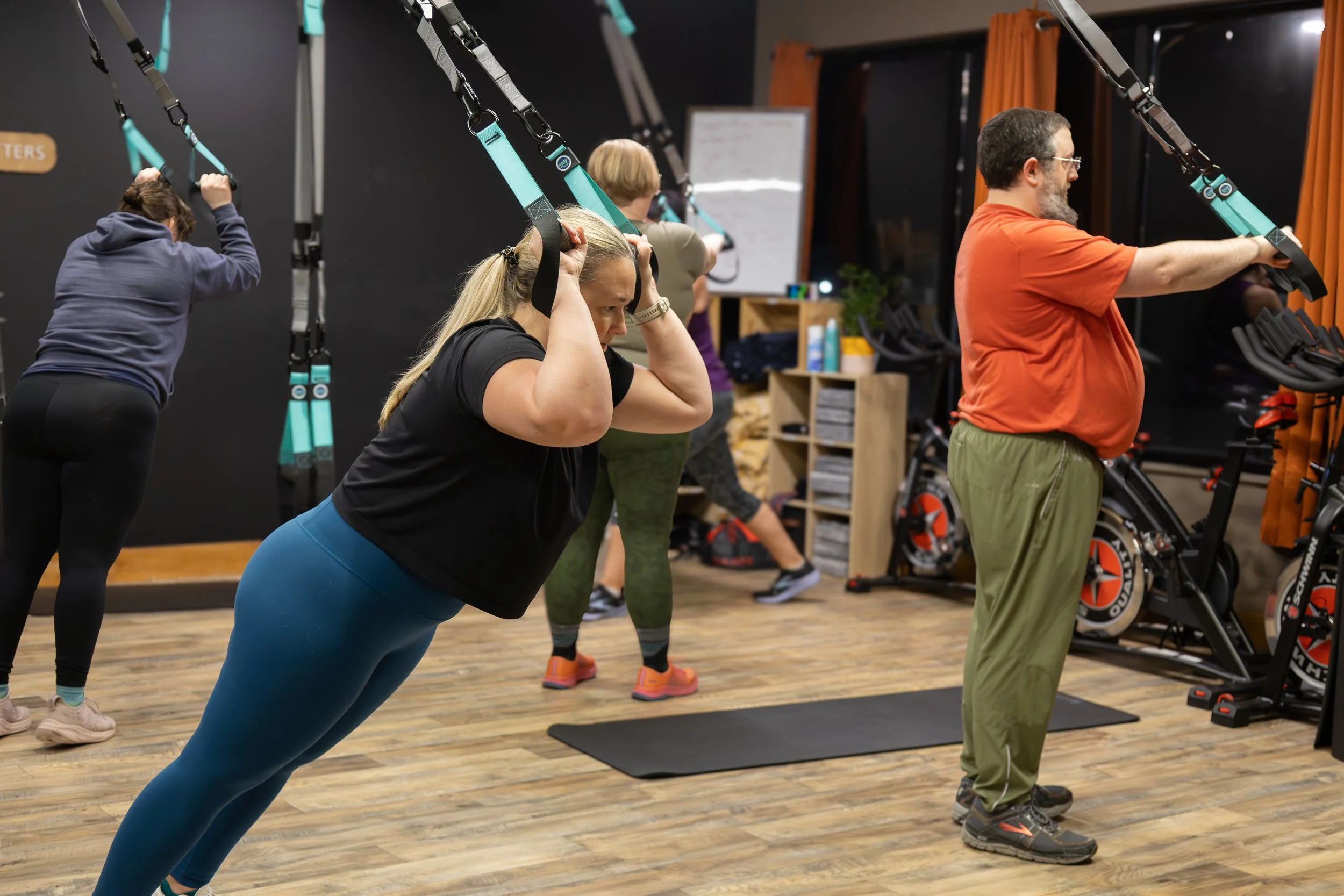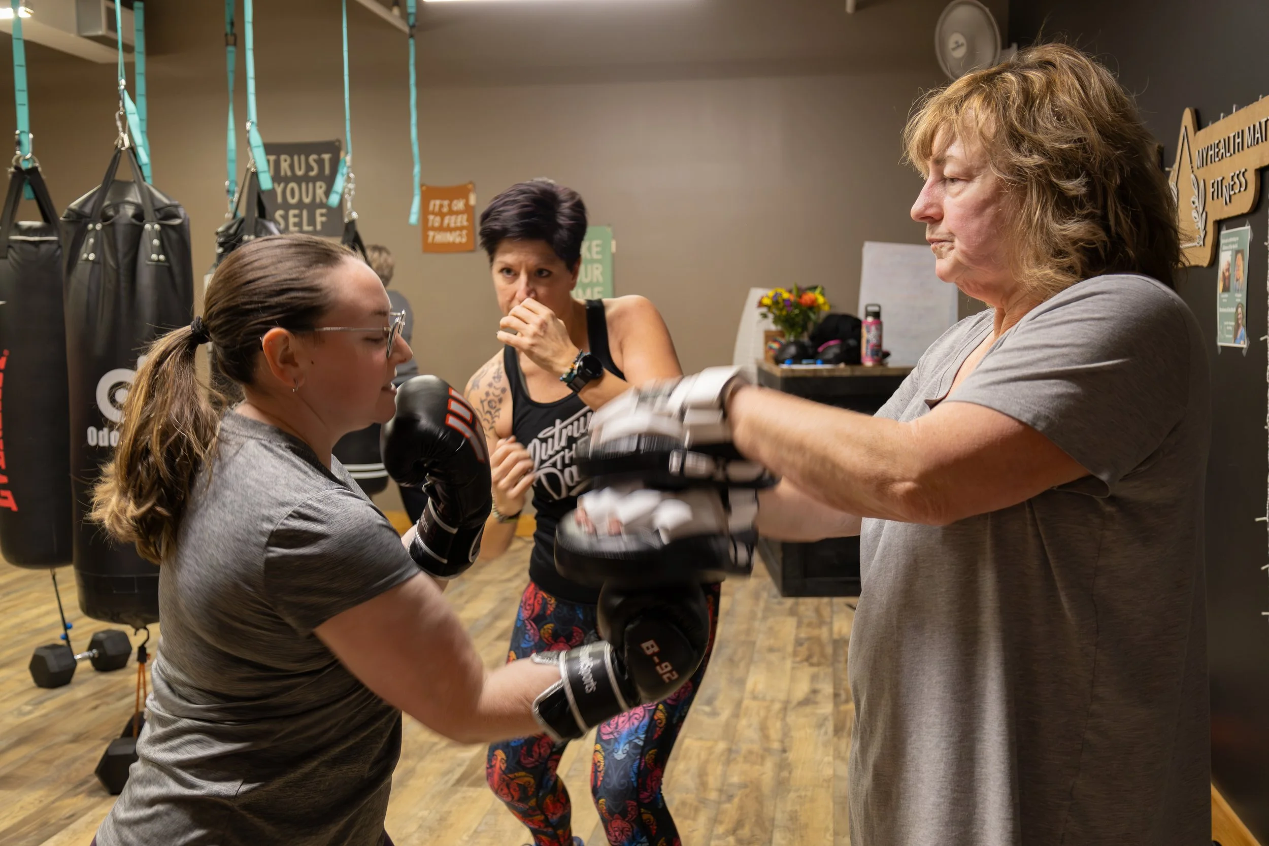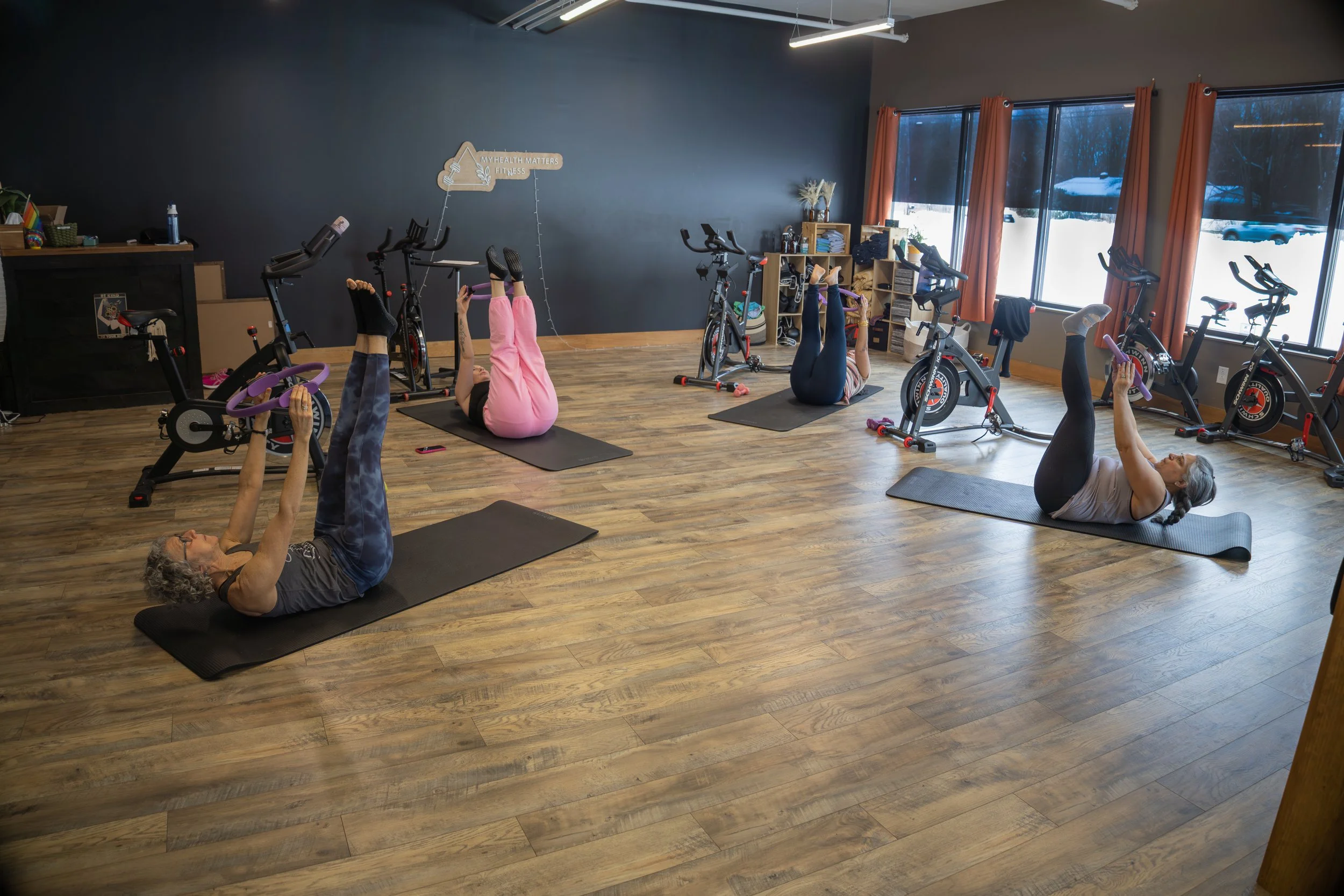 My Health Matters FitnessHadley, MA, 2025 Photos of members of My Health Matters Fitness enjoying their workouts. Classes include Cardio, Boxing, Spin, TRX, Yoga, and many others!