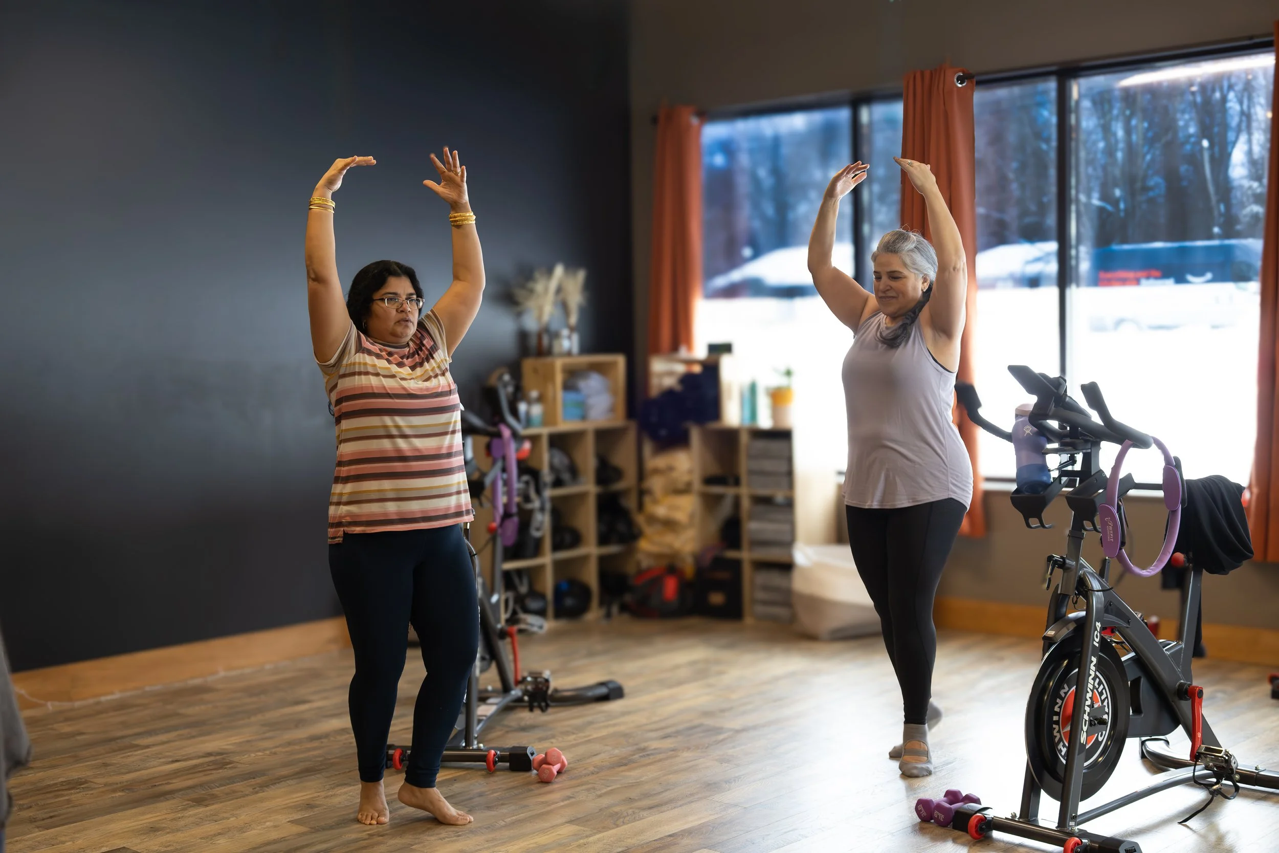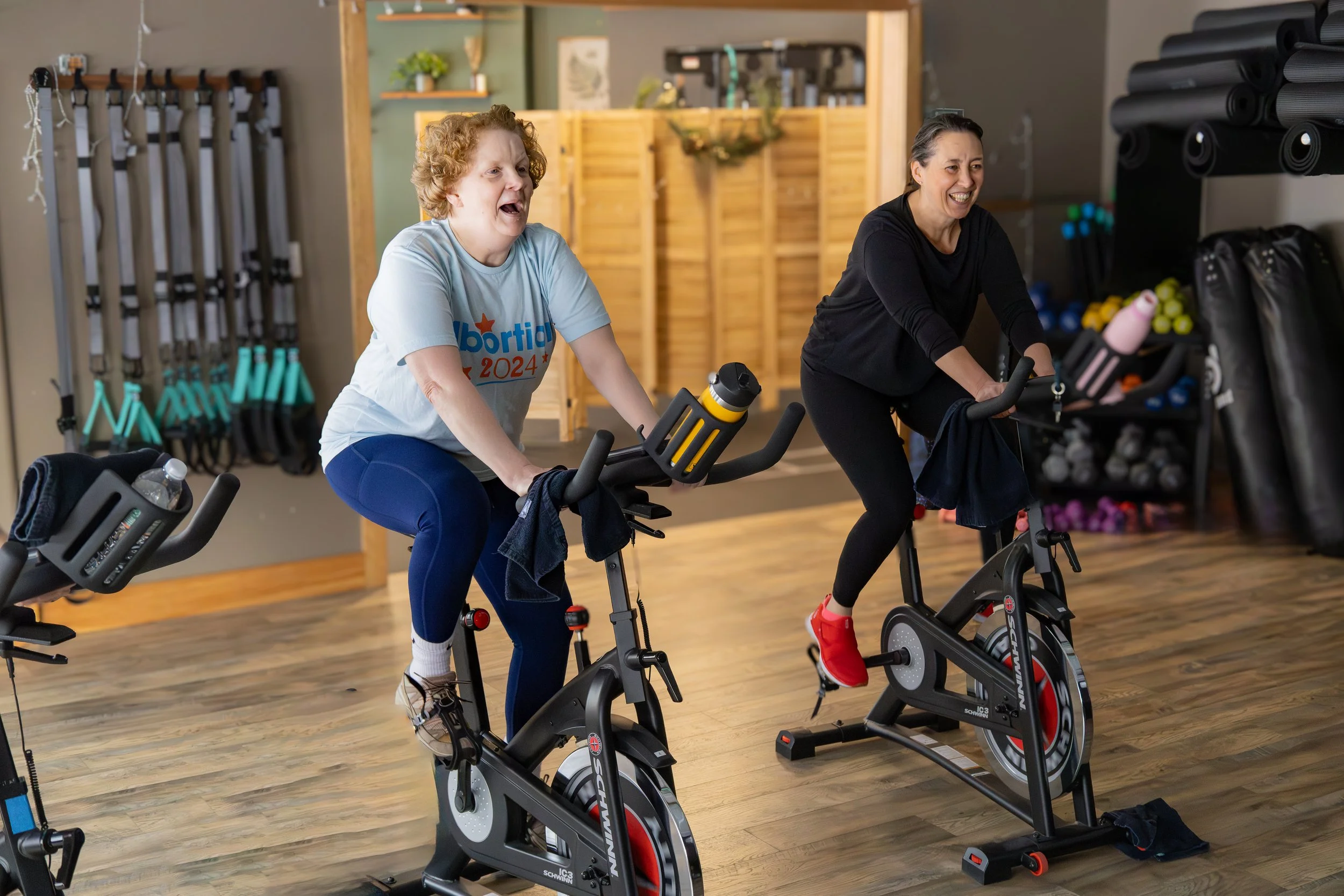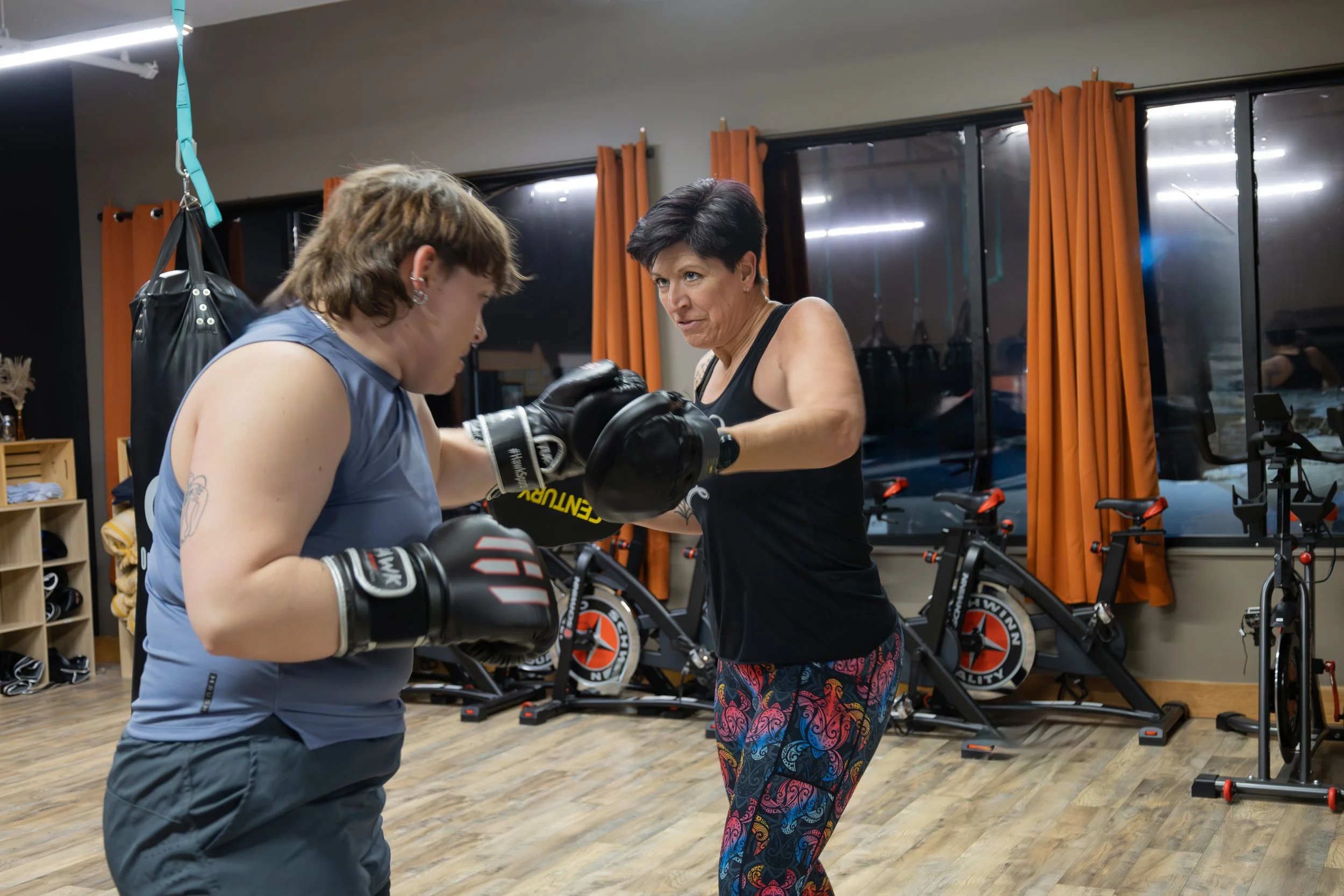 My Health Matters FitnessHadley, MA, 2025 Photos of members of My Health Matters Fitness enjoying their workouts. Classes include Cardio, Boxing, Spin, TRX, Yoga, and many others!